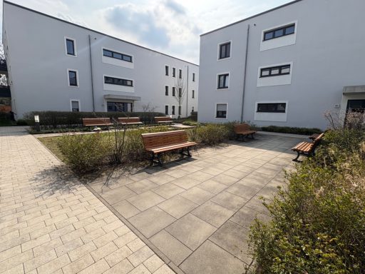 Ein gemütlicher Innenhof läd zum verweilen ein. Geschwisterkinder meiner kleinen Patienten können sich während der Wartezeit auf dem Spielplatz austoben.